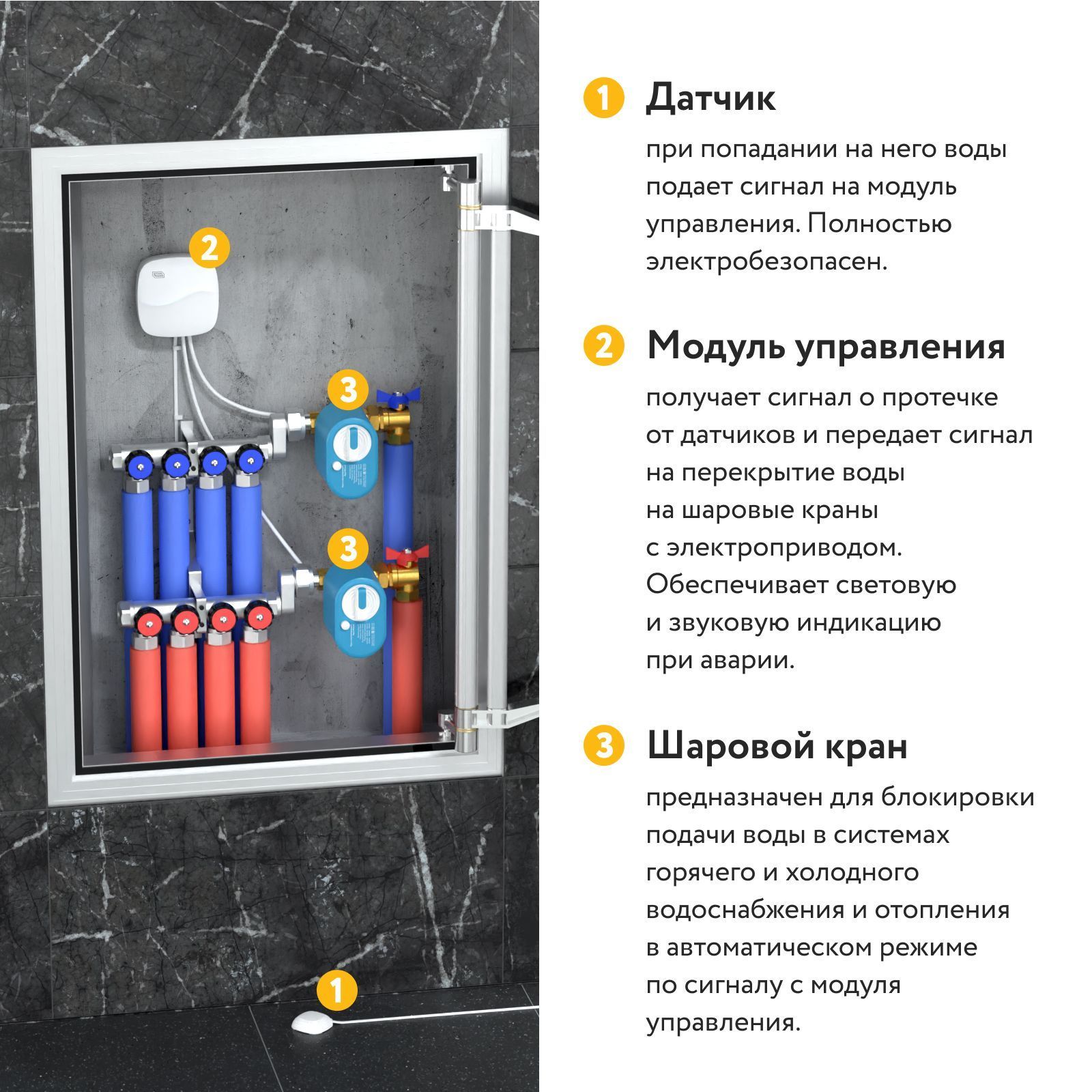 - Длина установочного провода, м 3 м. датчик; 1 м. кран