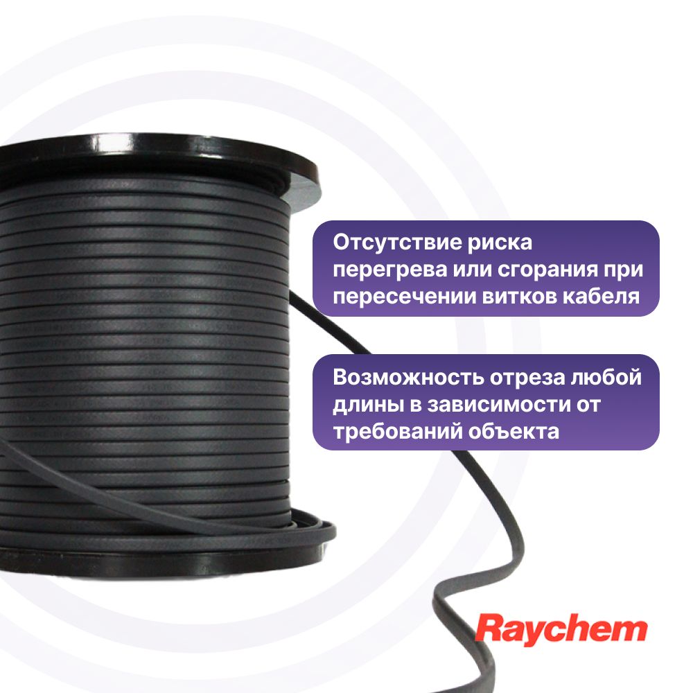 Саморегулируемые греющие кабели RAYCHEM BTV предназначены для защиты от замерзания объектов, не подвергаемых пропарке. Греющие кабели RAYCHEM BTV параллельного типа применяются для защиты от замерзания трубопроводов и емкостей.