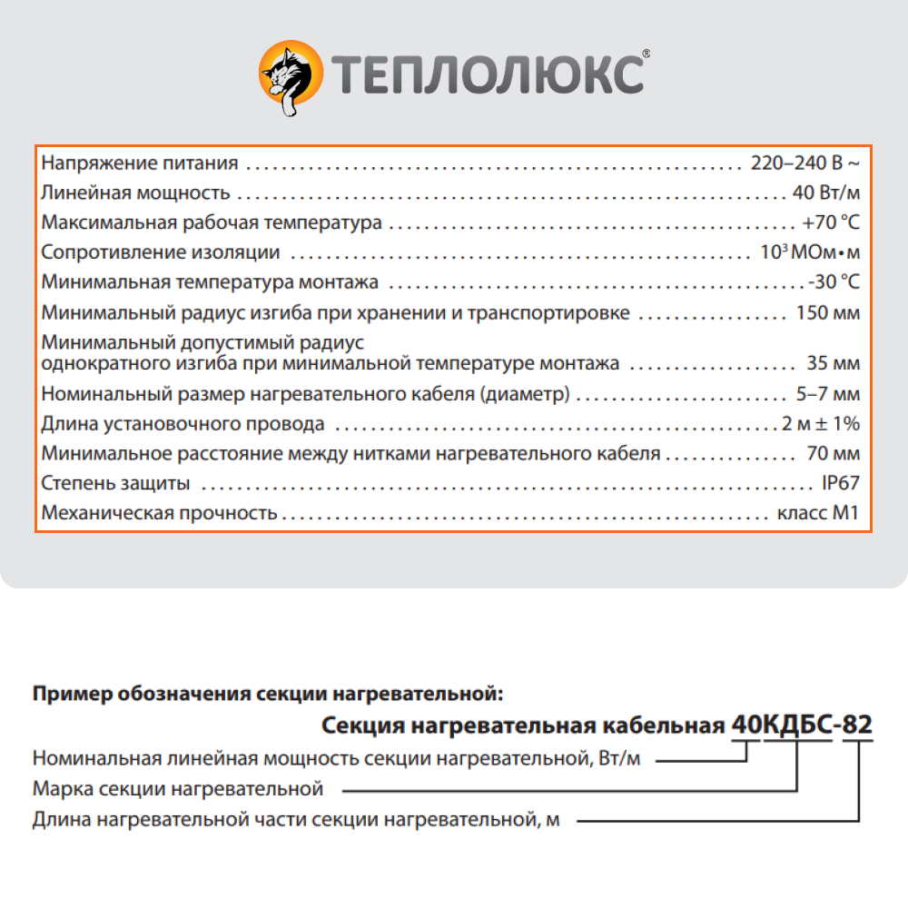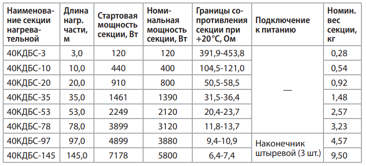1. Нагревательная секция КДБС с силовым шнуром длиной 2 м.2. Паспорт + гарантийный талон