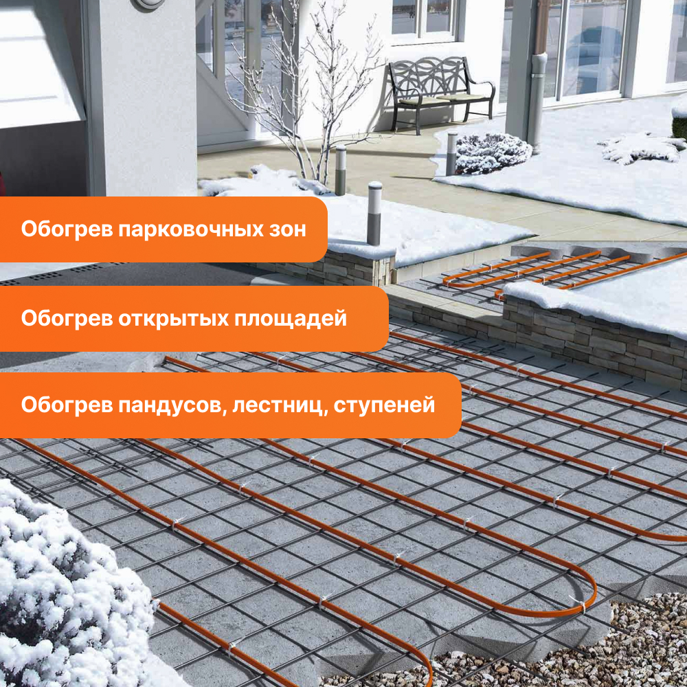 - Обогрева открытых площадей и входной группы - лестниц, пандусов, ступеней, парковочных зон;