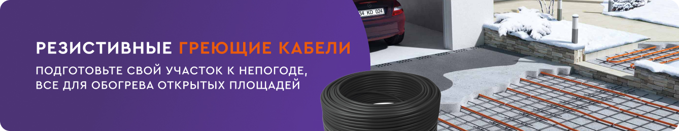 Резистивные греющие кабели - представляют собой нагревательные жилы, покрытые снаружи изоляционным материалом и оплеткой. Сопротивление у такого нагревательного элемента постоянное. Резистивный нагревательный кабель покупают только готовым комплектом и в случае перегорания потребуется менять всю систему. При этом схема монтажа требует обязательного использования терморегулятора. Резистивные кабели считаются идеальным решением для обогрева открытых площадей, кровли, а также для прогрева грунта и бетона, однако область применения такое же широкое: