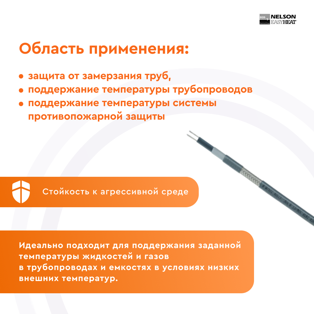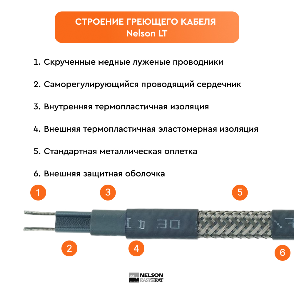 Саморегулирующийся нагревающий кабель Nelson LT идеально подходит для поддержания заданной температуры жидкостей и газов в трубопроводах и емкостях в условиях низких внешних температур. Наиболее типичными сферами применения данного продукта это системы защиты от замерзания и системы поддержания температур в таких объектах, как промышленные трубопроводы, системы противопожарной защиты, системы подачи технических жидкостей, воды, возврата конденсата. С оболочкой типа JT кабель применяется в системах антиобледенения водостоков.