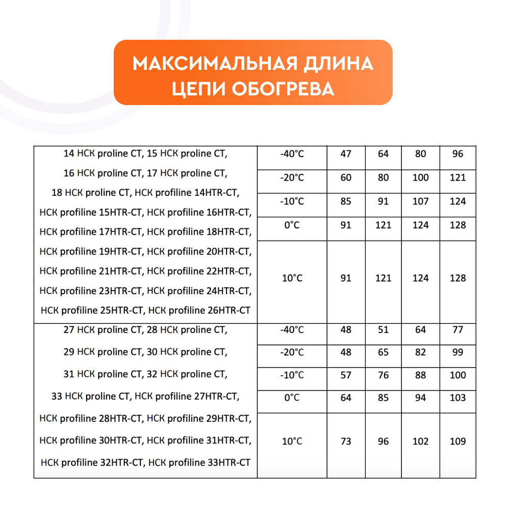 Максимальная длина цепи обогрева, м