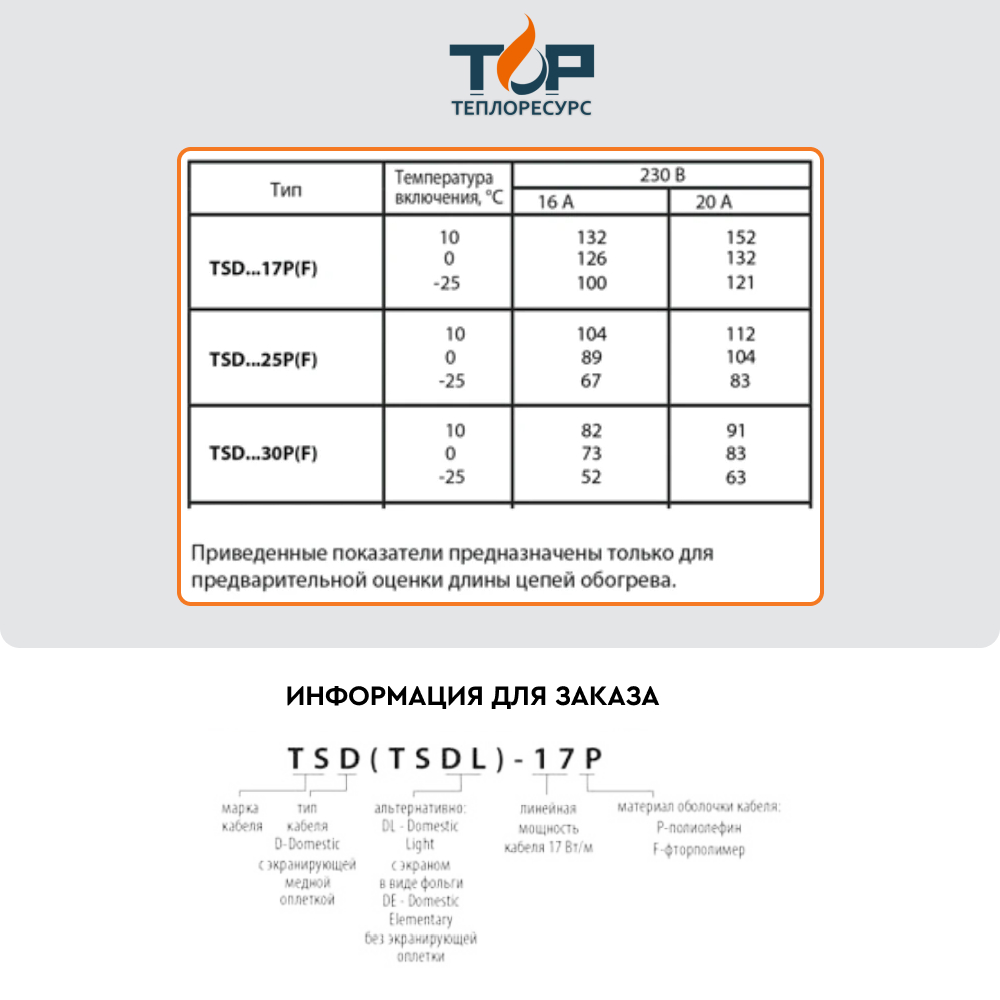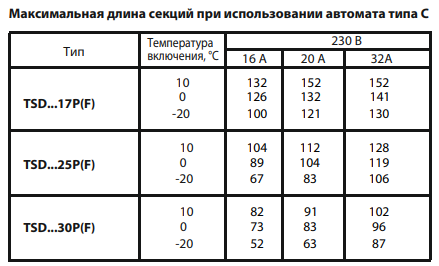 График мощности кабеля TSD: